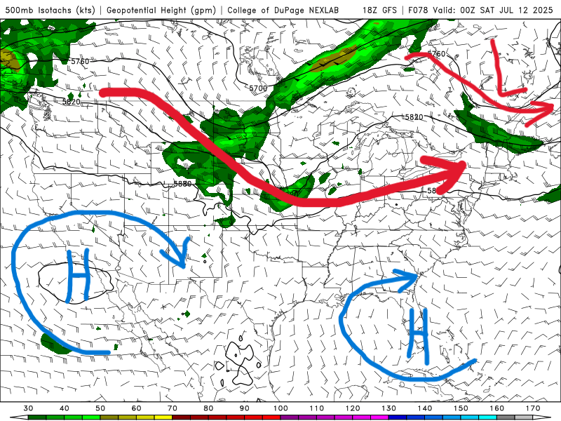 500 mb map for Friday from the GFS model. //Courtesy: College of DuPage