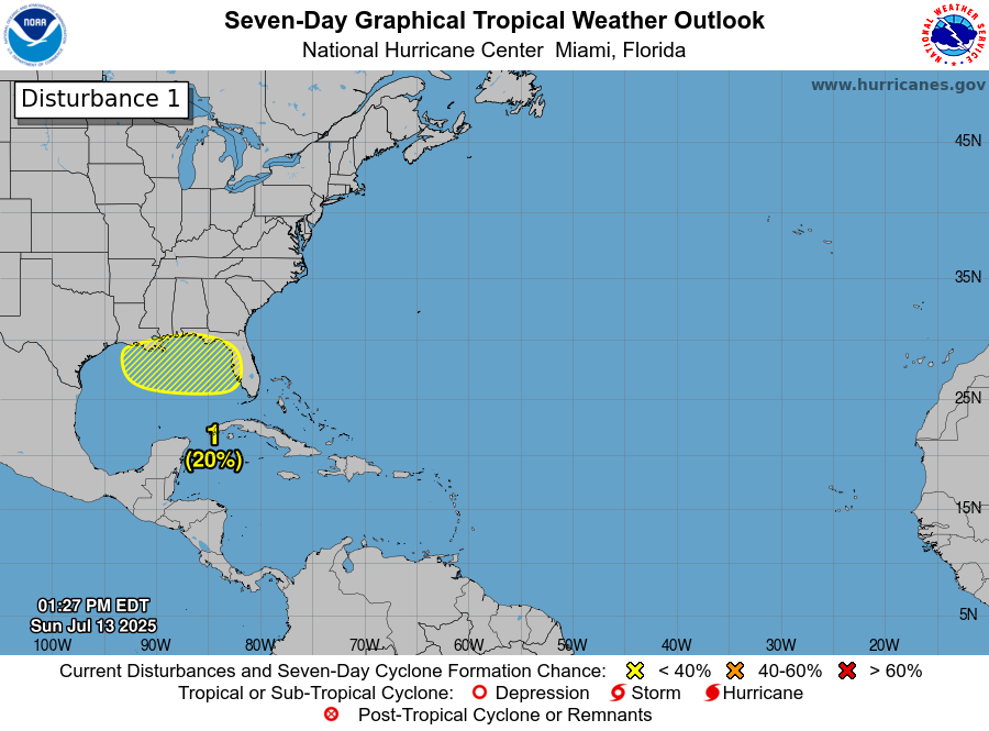Subtropics Activating A Little Across the Gulf – Weekly Outlook for South MS/LA/AL 7/13/25