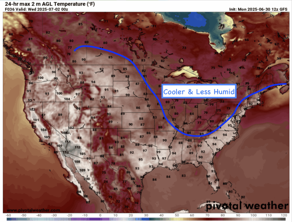 High Temperatures for Today 7/1/25 // Courtesy: Pivotal Weather