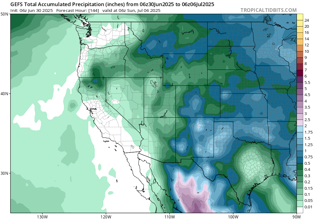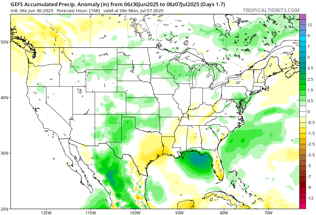 GEFS Rainfall Anomalies through July 7th 06z // Courtesy: Tropical Tidbits