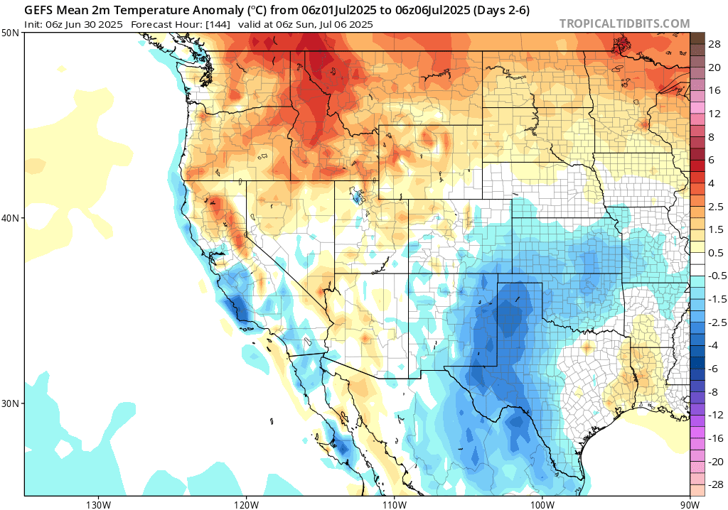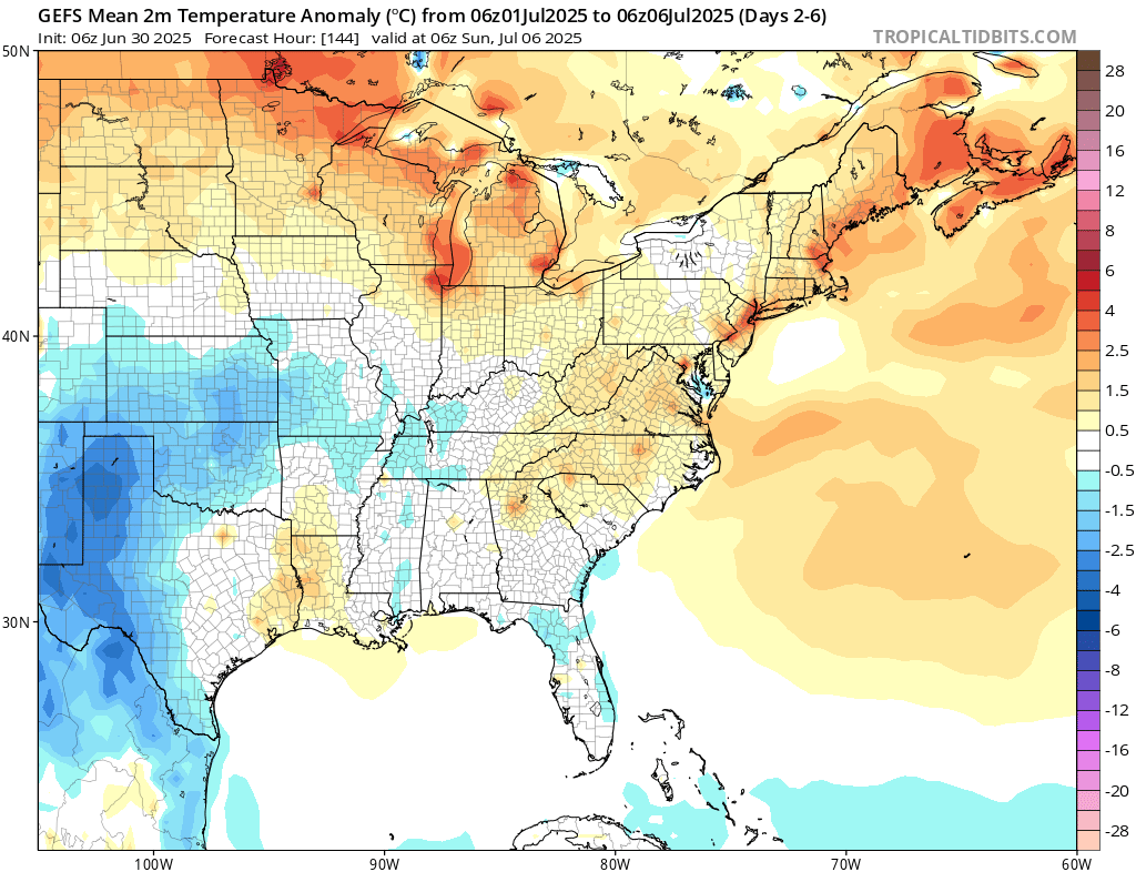 GEFS model surface temperature anomalies through Sunday 06z // Courtesy: Tropical Tidbits