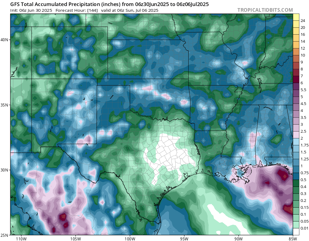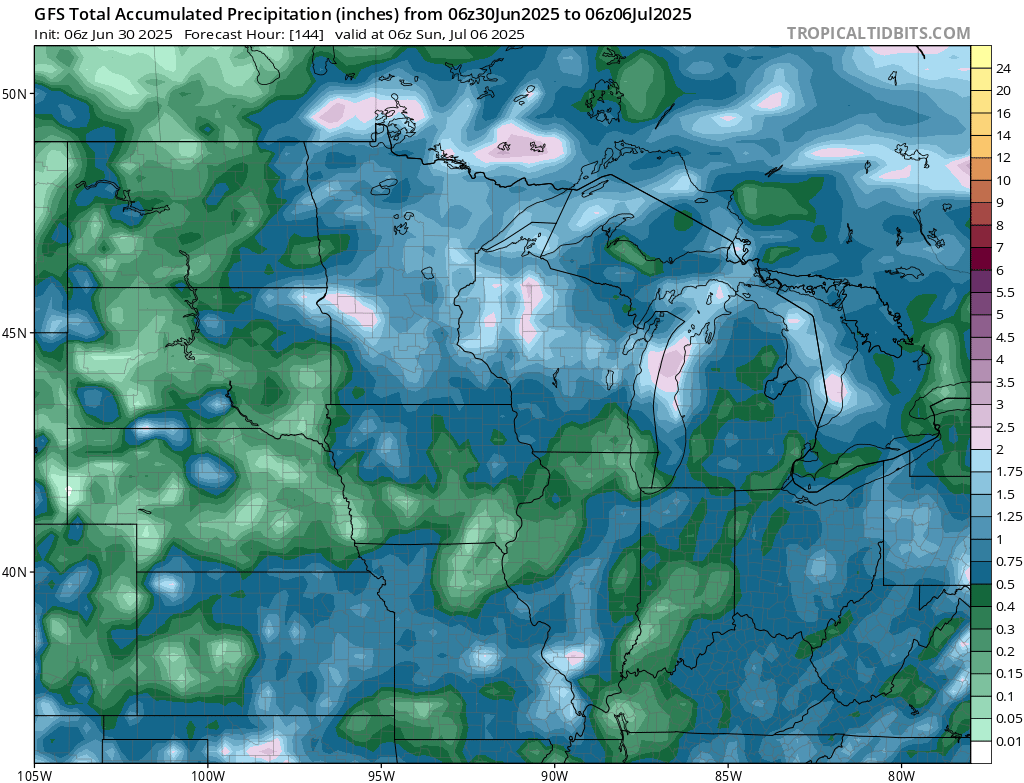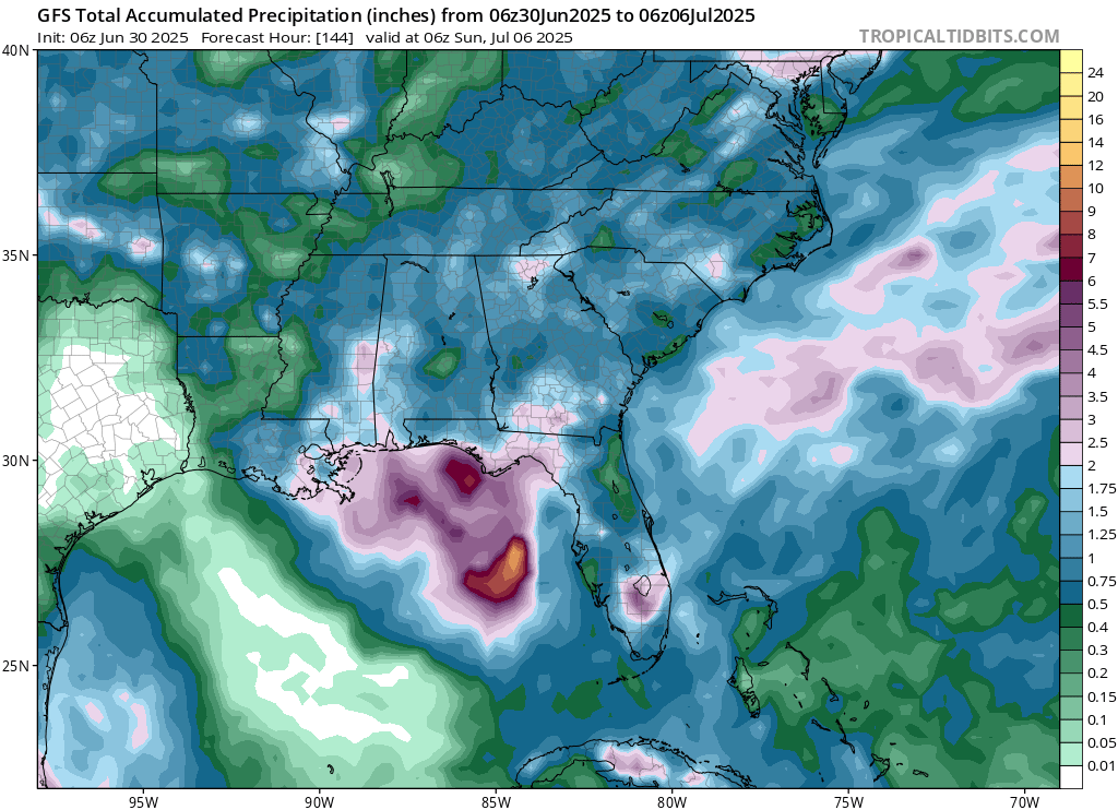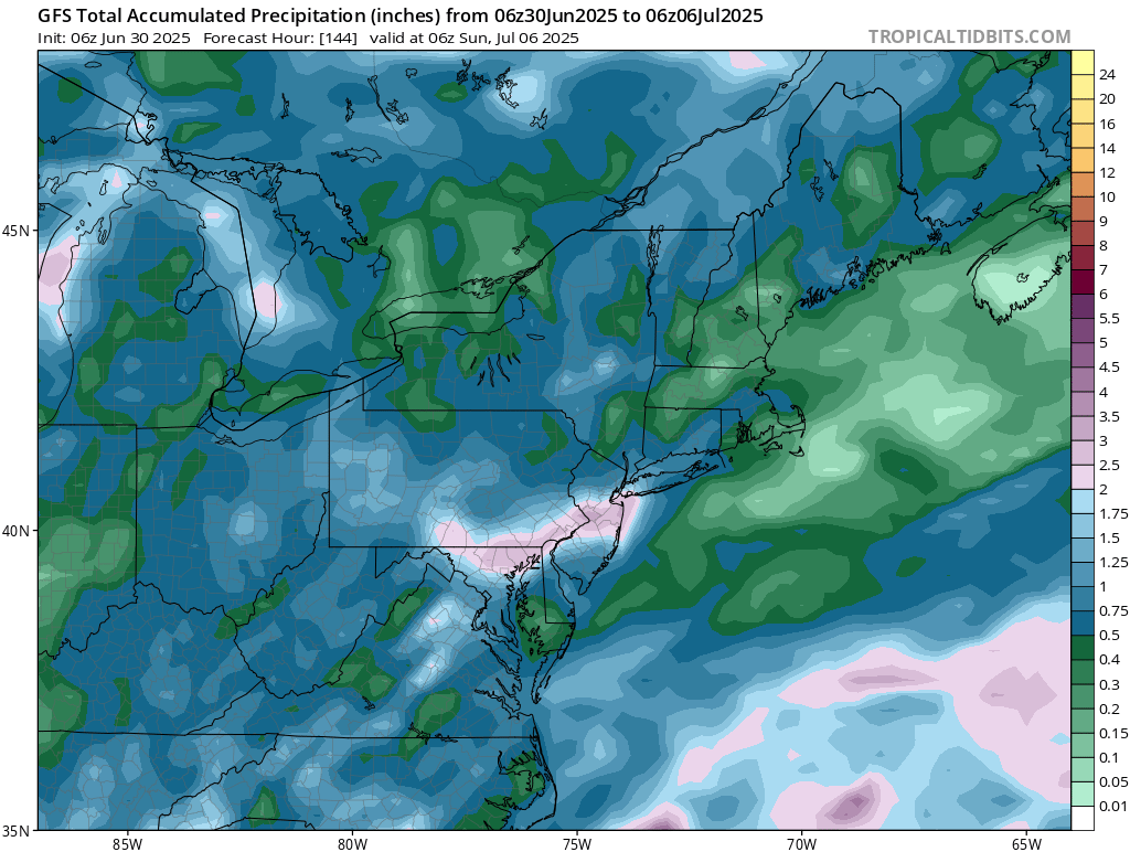 GFS model total accumulated precipitation through Sunday 06z // Courtesy: Tropical Tidbits