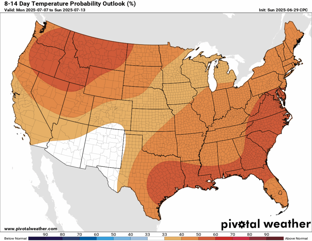 8-14 Day Temperature Probability Outlook from the CPC // Courtesy: Pivotal Weather