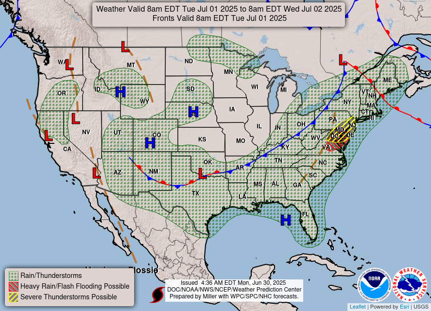Surface Map for Today 7/1/25 // Courtesy: wpc.ncep.noaa.gov