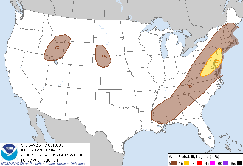 SPC Severe Wind Outlook for Today 7/1/25 // Courtesy: spc.noaa.gov