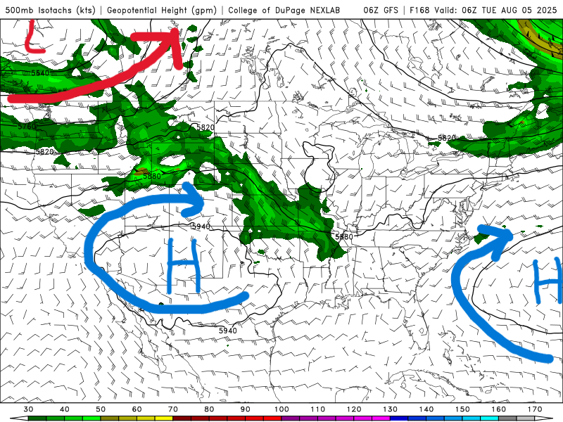 500 mb map for next Tuesday from the GFS model. //Courtesy: College of DuPage