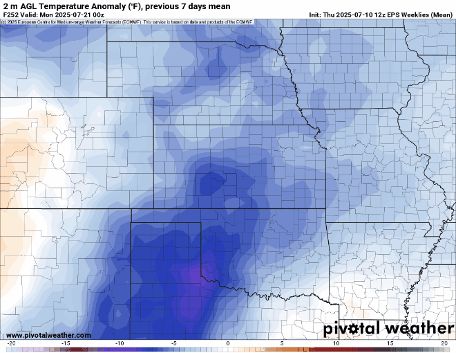 EPS 500mb heights over the next month showing the building high pressure over the southwest, which would help dry us out here in Kansas // Courtesy: Pivotal Weather