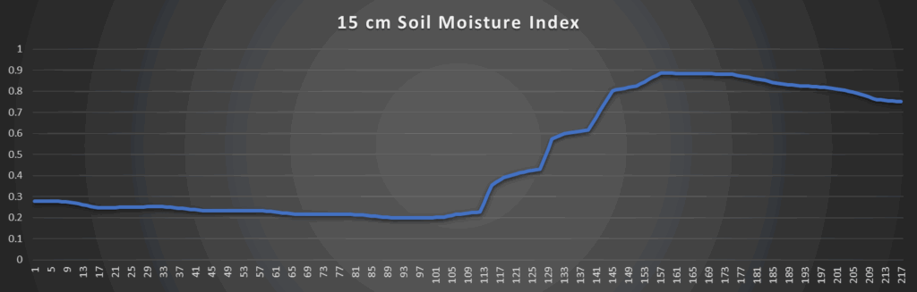 Soils across the region will continue to consistently dry, even with the rainfall chances over the next few days. This will help cause some more abnormally dry conditions to develop across more areas of central to eastern Kansas, although water loss rates will be relatively modest (between 1 to 1.3 mm/hr after today) over the next week. Models continue to hint at soil moisture replenishment in the long-range (possibly from this incoming potential cold front), but overall confidence is low in this, so it remains to be seen if this can be realized or not.