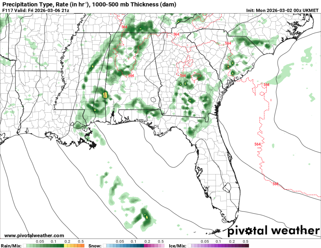 Model guidance is going to take some time to come into agreement with each other. Looking at the ECMWF and UKMET models above, they tell a similar tale to each other but slightly different interpretations, if you will. Both contribute the moisture from the Gulf into the equation; however, the Euro model shifts the moisture flow broader to the west compared to the UK model. I do think we’ll have a decent shot for rain across SE LA/MS on Friday, but how much rain we’ll receive is still up for debate until model guidance intersects closer to Friday.