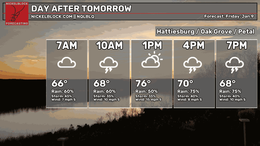 There will be a brief break from the rain in the early afternoon which may contribute to some instability needed for the next round of storms in the late afternoon and overnight hours. So far, it looks like our main chance for severe weather is in the evening hours as another round of cells move in from the south. So far, severe weather parameters look to be heavy rain and flash flooding, lightning, hail and high winds. A limited threat for tornadoes is also possible, so I think we can expect a few tornado warnings across Louisiana and Mississippi. The highest instability looks to be around south Louisiana to south Mississippi.