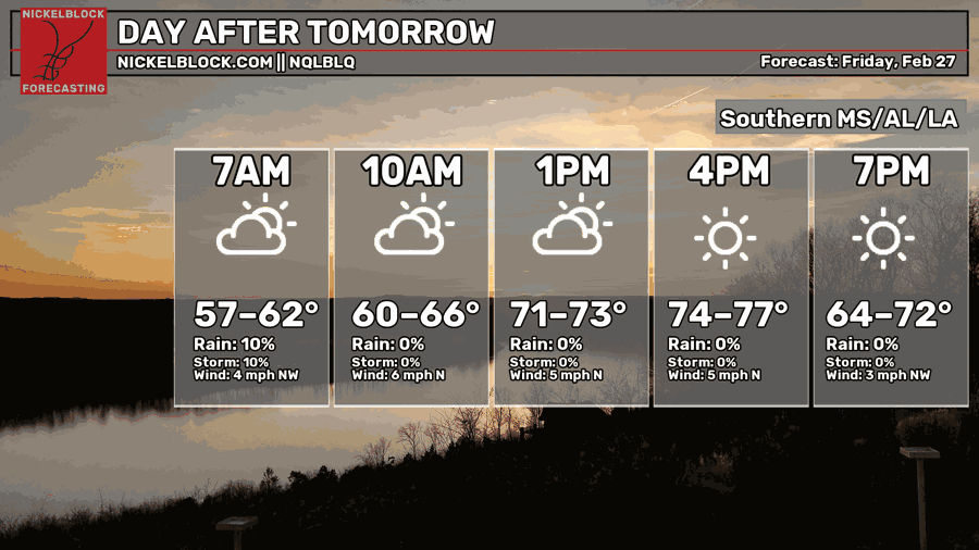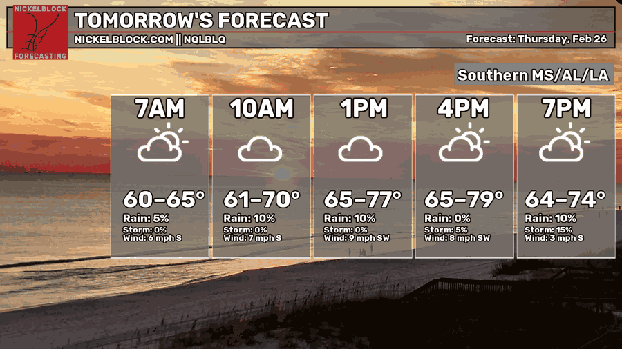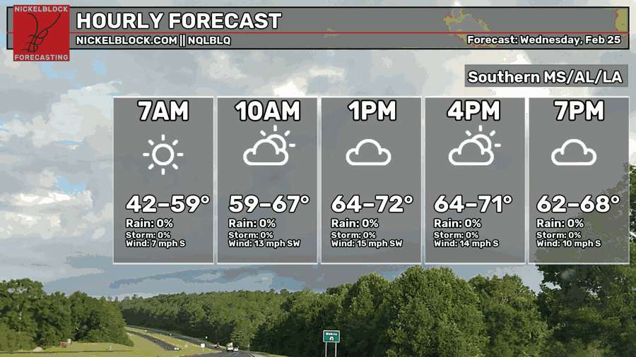 Warmer Weather Ahead, Rain May Help With Fire Weather – Weekend Forecast for South MS/LA/AL 2/25/26