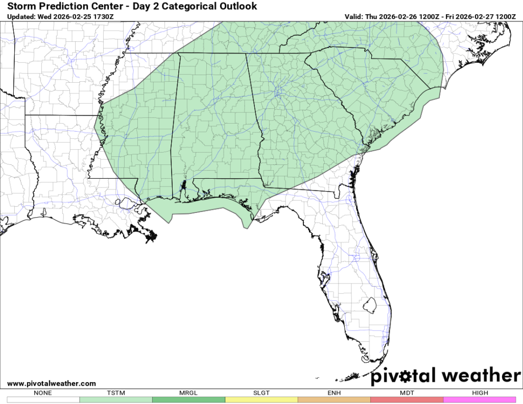 SPC outlook for Thursday into Friday (0/5 Thunderstorms)