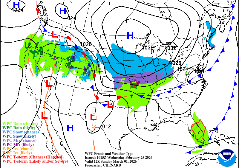 Front map on Sunday from the Weather Prediction Center
