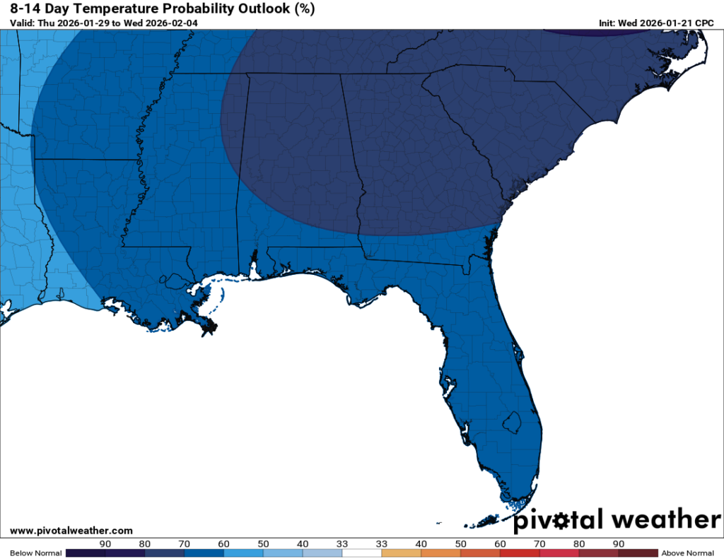 I’ve also attached the 8-14 day temperature and precipitation outlook, which shows we are staying in a below-average trend through the beginning of February. Welcome to winter!