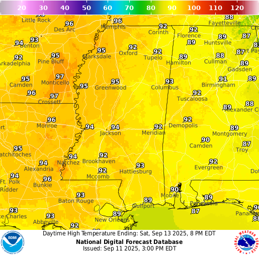 Wednesday: Sunny with highs in the mid 90s.